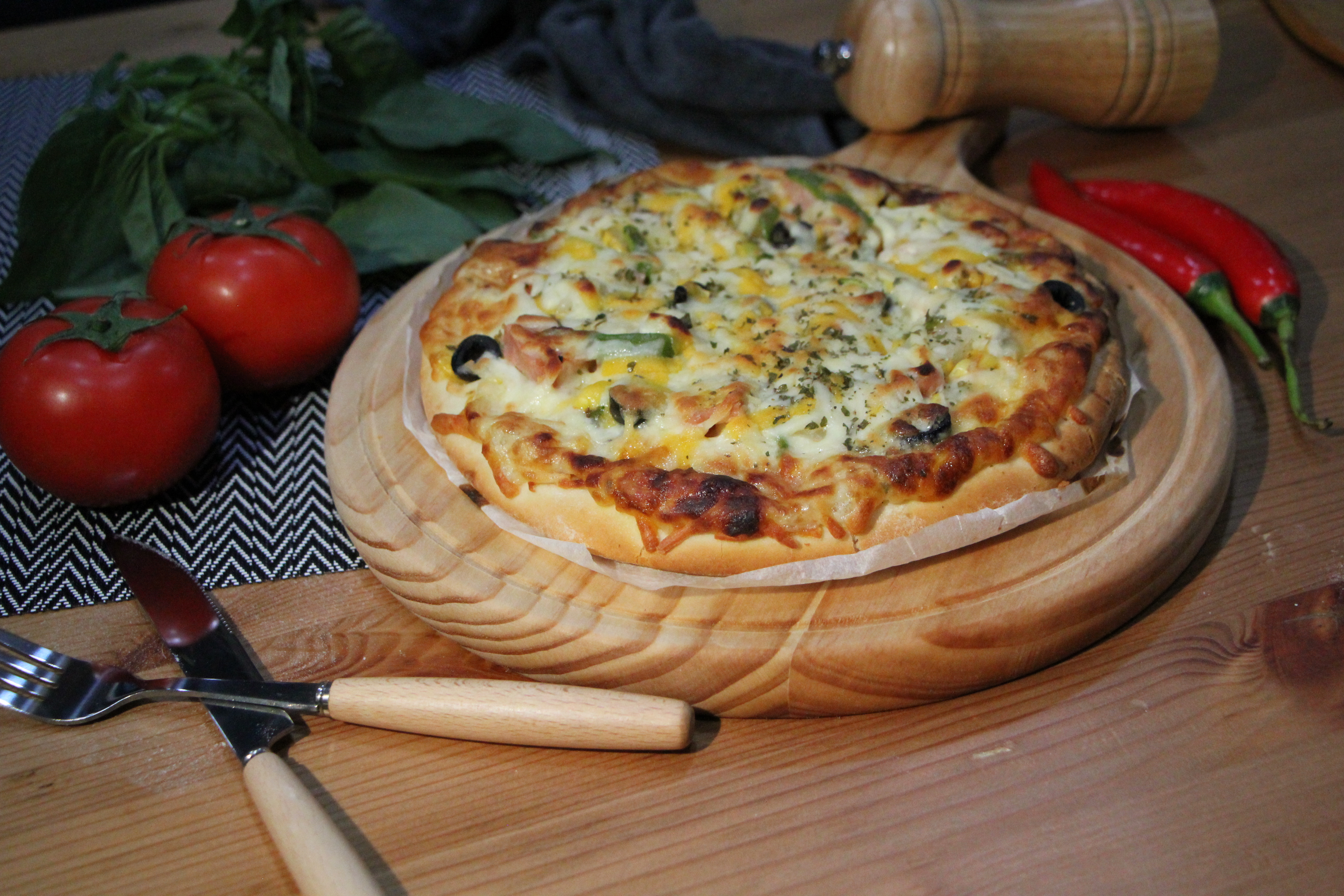 夏威夷餡料成份:鳳梨、玉米、青椒、火腿、黑橄欖。
