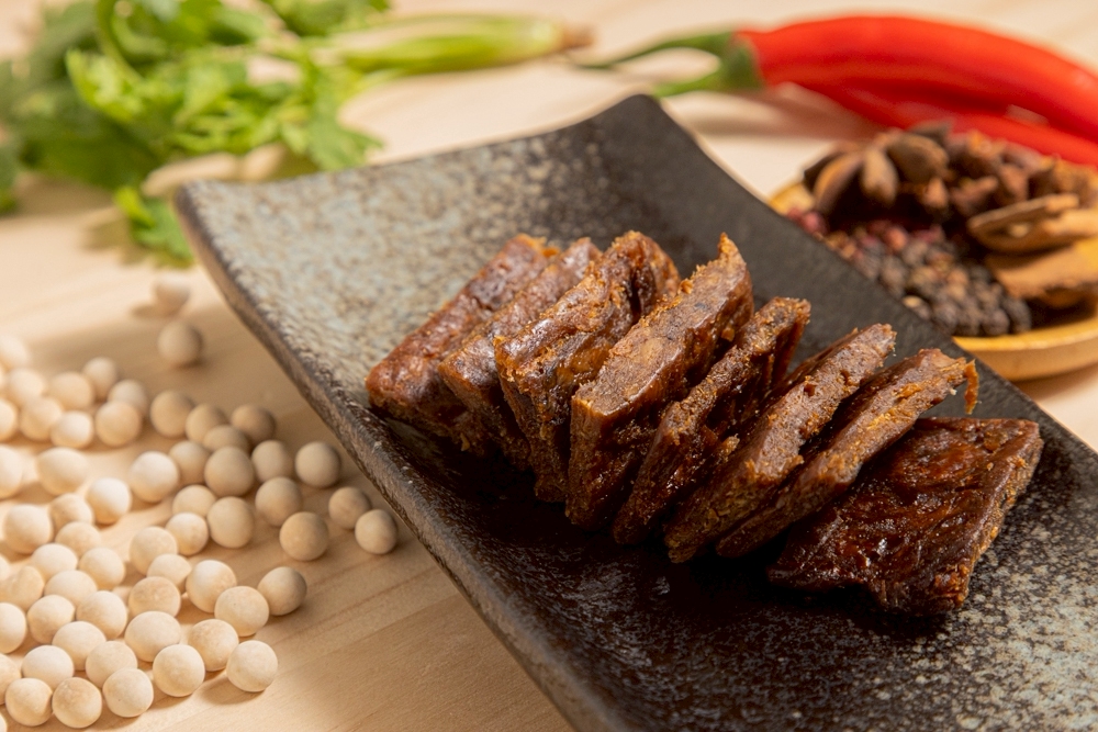 產品成分:非基改大豆蛋白、非基改大豆纖維、大豆油、糖、水、非基改純釀造醬油、蛋白粉、素食香料(酵母抽出物、麥芽糊精、鹽、糖、香菇、小麥蛋白、黃豆水解蛋白、L-麩酸鈉、5' 次黃嘌呤核苷磷酸二鈉、5'-鳥嘌呤核苷磷酸二鈉)、五香粉(小茴、肉桂、八角、丁香、胡荽陳皮)、羥丙磷酸二澱粉、乙基麥芽醇醋酸鈉、檸檬酸鈉、醋、玉米糖膠、海藻酸鈉、丁香、白胡椒、辣椒粉、二氧化矽、紅麴粉、山梨醇液、脂肪酸甘油酯、無水醋酸鈉、(防腐劑)己二烯酸鉀